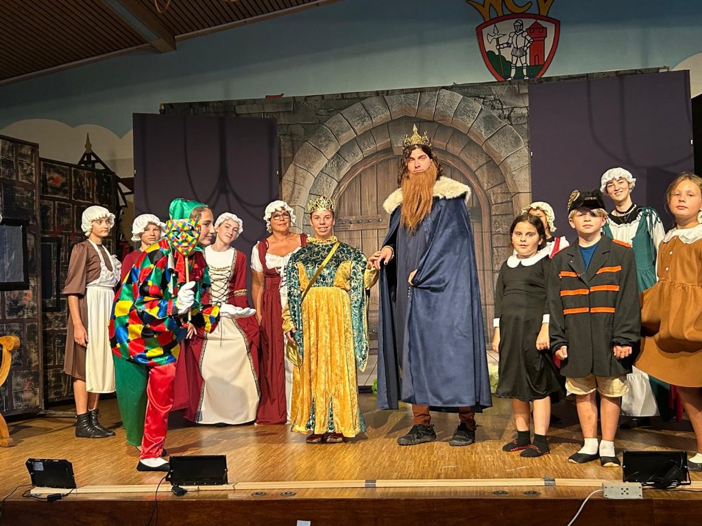 In der letzten Sommerferienwoche stellte ein achtköpfiges Team im Vereinsheim des Ersten Wächtersbacher Carnevalsvereins 1961 e.V. mit 35 Kindern eine Weltpremiere auf die Bühne. Unter der Gesamtleitung von Klaus Walther, mit Unterstützung von Musikpädagogin Elina Schmotzer und Choreografin Ronja Wachsmuth, wurde in fünf Tagen ein Musical einstudiert. Versorgt wurde das Ensemble von der Caritas. Die Kinder haben eigene Tänze ausgedacht, Lieder und Texte eintrainiert und in aufwendigen Kostümen eine märchenhafte Geschichte von Kaiser Barbarossa erzählt, der einen Wunschspiegel zu seinem Geburtstag geschenkt bekommen hat. Ihr Können konnten sie am 16. August vor über 150 Zuschauer*Innen in zwei Vorstellungen zeigen. Während des Stücks wurde gelacht, aber auch einige Tränen vor Rührung vergossen. Das Publikum belohnte die Darstellerinnen mit stehenden Ovationen.